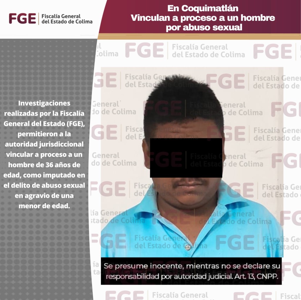 Por lo anterior, tas ser detenido por elementos de la Policía Municipal de Coquimatlán, fue puesto a disposición del Ministerio Público, y a través de la audiencia inicial, un Juez de Control calificó de legal la detención, procediendo a la vinculación a proceso y decretándole la prisión preventiva oficiosa como medida cautelar, además de 4 meses para la investigación complementaria.