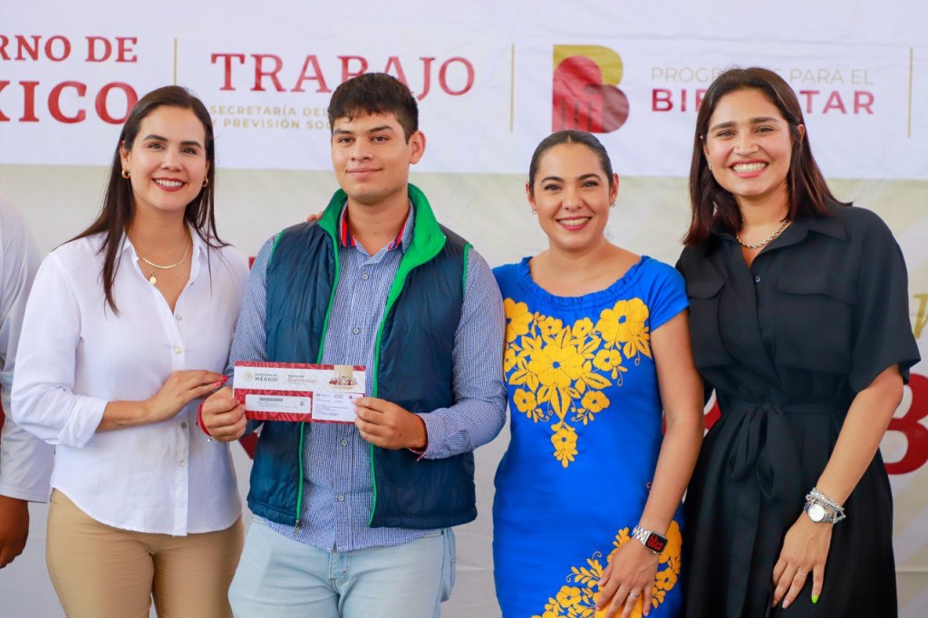 La gobernadora del estado de Colima, Indira Vizcaíno Silva, participó la tarde de este jueves en la entrega de tarjetas del Banco del Bienestar a 129 jóvenes aprendices del municipio de Manzanillo, dentro del programa Jóvenes Construyendo el Futuro (JCF), que otorga la Delegación de Programas para el Bienestar del Gobierno de México que encabeza en la entidad Viridiana Valencia Vargas. Estos beneficiarios y beneficiarias se vincularon en abril y el 28 de mayo recibirán su primer pago mensual por 6 mil 380 pesos.