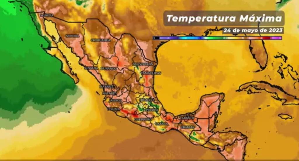 El organismo de la Comisión Nacional del Agua (Conagua), fuente oficial del Gobierno de México, pronosticó temperaturas máximas de 40 a 45°C: Colima, Jalisco, Michoacán, Guerrero, Sinaloa, Nayarit, Chiapas, Tabasco, Campeche, Yucatán y Quintana Roo, mientras que las temperaturas mínimas serían de 0 a 5°C en zonas montañosas de Chihuahua y Durango.