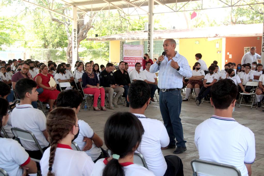 El secretario de Educación y Cultura, Adolfo Núñez González, impartió una charla de sensibilización a estudiantes de la Escuela Secundaria No. 13, “Miguel Virgen Morfín” en Villa de Álvarez, con el propósito de motivarlos para seguir sus sueños y lograr sus metas como parte de la estrategia estatal «Vamos todas y todos juntos por la paz” que impulsa la gobernadora de Colima, Indira Vizcaíno Silva.