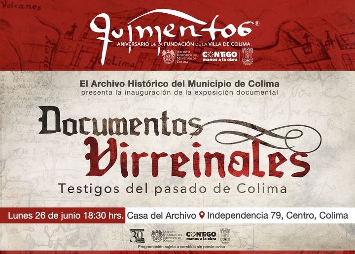 En este caso, agregó, el próximo lunes 26 de junio, a las 18:30 horas, se presentará, en la Casa del Archivo, esta exposición documental “Documentos Virreinales: Testigos del pasado de Colima”, los cuales serán de un gran interés para el público en general, pues revelan parte de ese periodo histórico en el municipio.