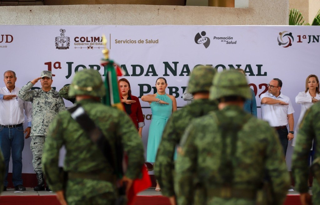 Este lunes, en la ceremonia cívica de julio, la gobernadora de Colima, Indira Vizcaíno Silva, inició la Primera Jornada de Salud Pública 2023, que realizan de manera conjunta la Secretaría de Salud estatal y autoridades de salud federal, desde el 10 y hasta el 21 de julio, bajo el eslogan ‘Comunidad sana, comunidad fuerte’ y con el objetivo de promover acciones de prevención y el cuidado de la salud.