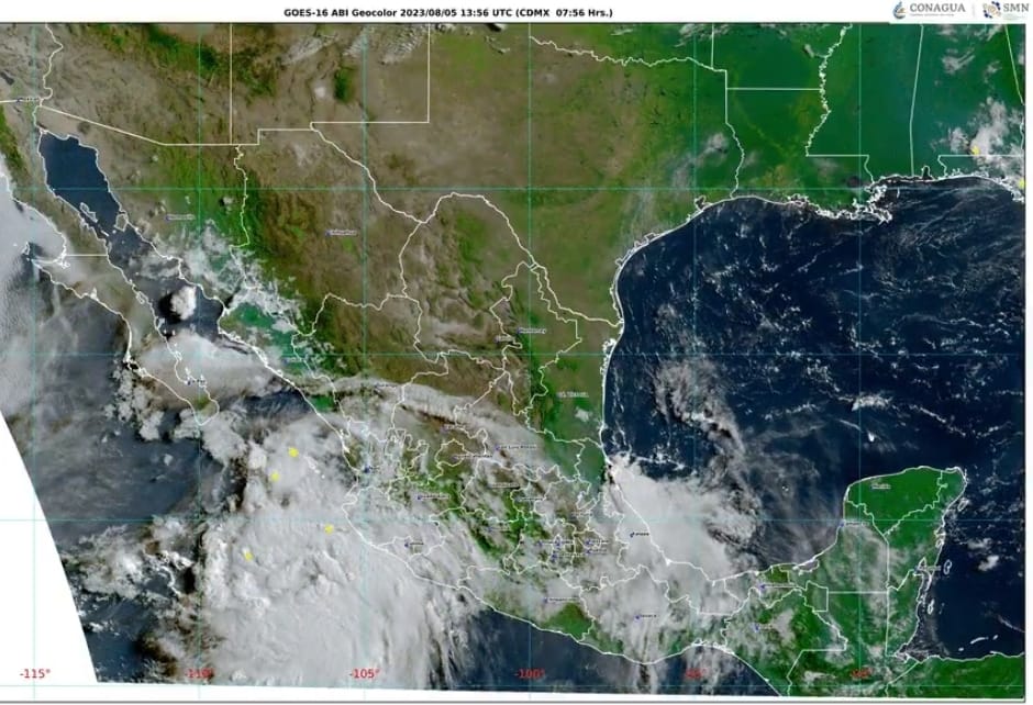 Hoy sábado 5 de agosto, la onda tropical número 18 se integrará en la circulación de una zona de baja presión con alta probabilidad para desarrollo ciclónico, dando origen a una posible depresión tropical al suroeste de Jalisco, produciendo lluvias puntuales intensas, rachas de viento de 60 a 70 kilómetros por hora y oleaje elevado de dos a cuatro metros de altura en las costas de Colima, Jalisco y Michoacán.