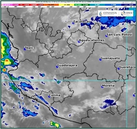 El organismo de la Comisión Nacional del Agua (Conagua), fuente oficial del Gobierno de México, prevé que en algunos municipios del estado de Colima se alcancen temperaturas máximas de hasta 35 grados Celsius, lo mismo que en zonas de Jalisco, Michoacán, Guerrero, Zacatecas, Querétaro, Hidalgo, Puebla, Morelos, Tabasco, Campeche, Yucatán y Quintana Roo.