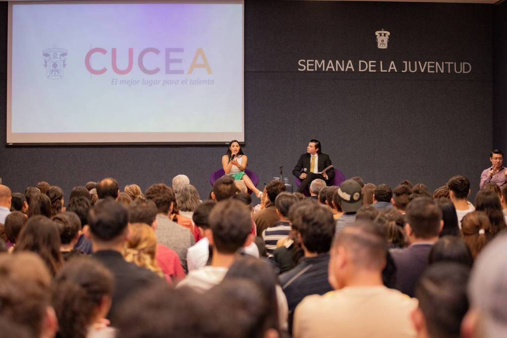La gobernadora de Colima, Indira Vizcaíno Silva, participó este lunes en el conversatorio ‘Empoderamiento, Juventud y Liderazgo’, organizado por el Centro Universitario de Ciencias Económico Administrativas (CUCEA) de la Universidad de Guadalajara (UdeG), en la Semana de la Juventud, donde habló de su experiencia como mujer joven en la política y el servicio público, de las políticas impulsadas por su administración y demás gobiernos de la Cuarta Transformación -como el Gobierno de México-, a favor de las mujeres, las juventudes, las personas con discapacidad, entre otros sectores sociales.