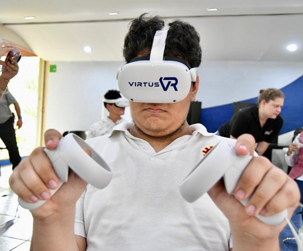 Posteriormente, Margarita Moreno presenció la segunda etapa de esta dinámica, la cual consistió en reforzar el contenido de la plática de concientización y sensibilización con el empleo de lentes de Realidad Virtual.