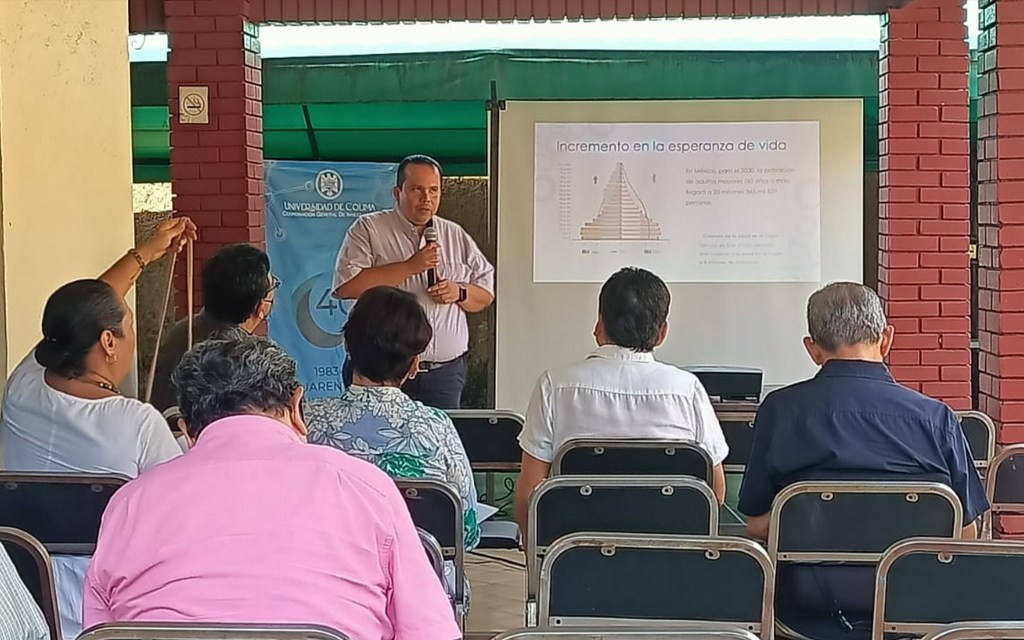La charla, organizada por la Coordinación General de Investigación, se llevó a cabo en la Casa del Jubilado y Pensionado de la UdeC. Allí, Pedro César Santana dijo que en el estado de Colima hay 58 mil 728 personas de 60 años y más, con una tasa de crecimiento anual de 4.3 por ciento. Este aumento, continuó, “incrementa la demanda de servicios relacionados con este sector de la población, principalmente los relacionados con la salud, como son las enfermedades crónicas y el deterioro en las funciones cognitivas, sensoriales y motoras”.