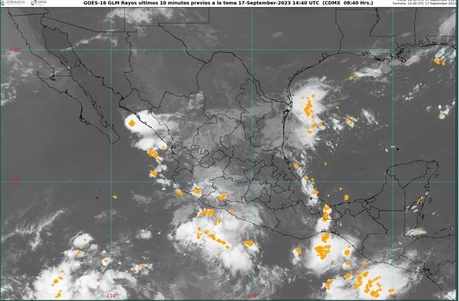 Hoy domingo 17 de septiembre, el Servicio Meteorológico Nacional (SMN), prevé intervalos de chubascos con lluvias puntuales fuertes de hasta 50 milímetros, en algunos municipios de Colima, al igual que en Chihuahua, Coahuila, Zacatecas, Querétaro, Hidalgo, Puebla, Morelos, Estado de México, Ciudad de México, Guerrero, Oaxaca, Veracruz, Tabasco, Campeche, Yucatán y Quintana Roo.