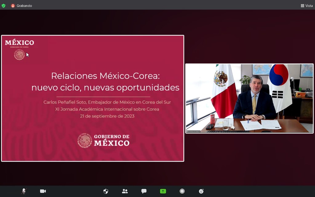 Como parte de la XI Jornada Académica Internacional sobre Corea que organiza el Centro Universitario de Estudios e Investigaciones sobre la Cuenca del Pacífico-Centro de Estudios APEC (Asia-Pacific Economic Cooperation) de la Universidad de Colima, este miércoles se llevó a cabo de manera virtual la conferencia: “Relaciones México-Corea: nuevo ciclo. Nuevas oportunidades”, a cargo del embajador de México en Corea, Carlos Peñafiel Soto.