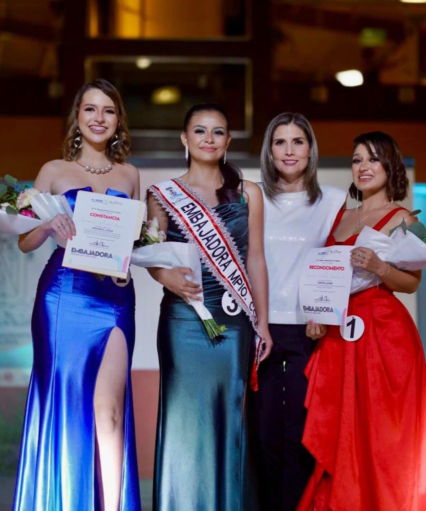 Así, Fernando Cruz, director general de Proyectos Estratégicos del Ayuntamiento de Colima, anunció a como tercer lugar y le entregó un reconocimiento a Ámbar Areli del Ángel López. Asimismo, la presidenta Margarita Moreno y Aracely Vargas Aviña, directora de Educación, Cultura y Recreación, entregaron a Mariana Estrada Bravo, su nombramiento como Embajadora Suplente.
