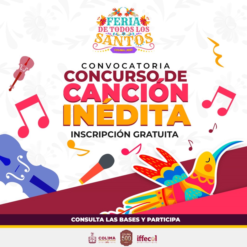 En el marco de la edición 84 de la Feria de Todos los Santos 2023, el Instituto de Fomento de Ferias y Exposiciones del Estado de Colima (Iffecol) convoca a participar en el concurso de Canción Inédita, dirigida a las y los intérpretes y cantantes de la entidad, informó el director general del Iffecol, Rodolfo Aguilar Dávalos, quien dijo que el objetivo es reconocer el trabajo y talento de artistas colimenses.
