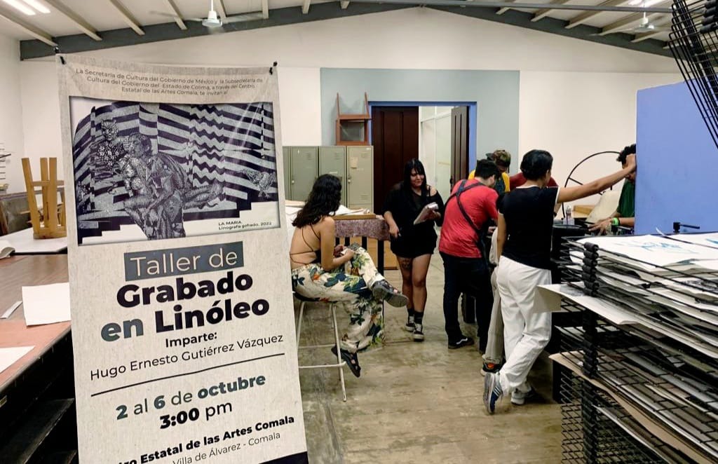En el Centro de Formación y Producción de Artes Gráficas “La Parota” del municipio de Comala Pueblo Mágico, se dieron por concluidos los cursos que durante semanas previas impartió el maestro Hugo Ernesto Gutiérrez Vázquez, a quince artistas gráficos en formación, que recibieron nuevos conocimientos teóricos y prácticos, además de herramientas para perfeccionar sus grabados sobre linóleo.
