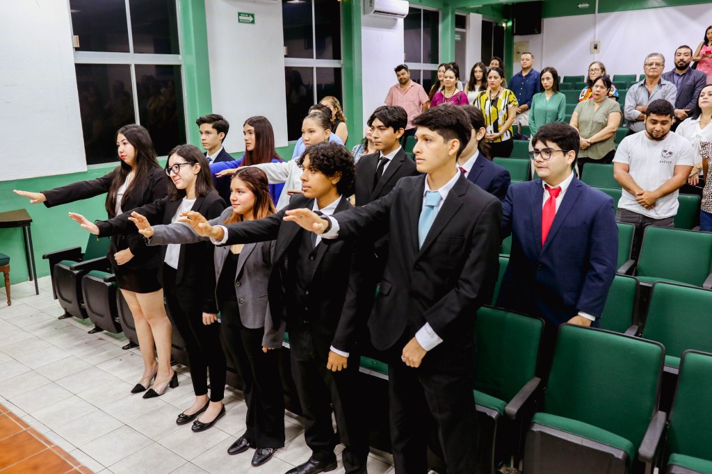En su discurso, enfatizó la relevancia de mantener altos estándares de desempeño académico y ética profesional en sus futuras carreras. Asimismo, tomó la protesta correspondiente a las y los nuevos técnicos.