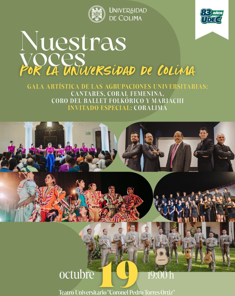 *Para celebrar los 83 años de la Universidad de Colima unirán sus voces Cantares, Coral Femenina, Coro del Ballet Folklórico, Mariachi y la participación especial de Coralima