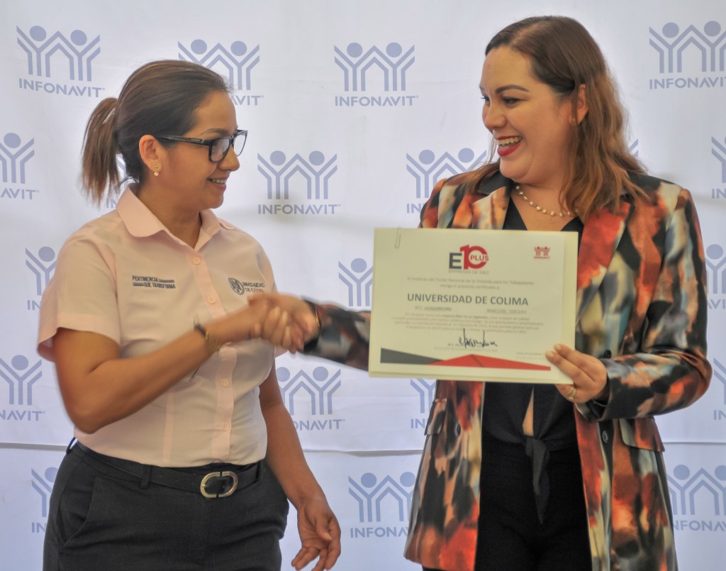 Por segunda ocasión, la Universidad de Colima recibió el reconocimiento Empresa de Diez Plus que otorga el Instituto del Fondo Nacional de la Vivienda para los Trabajadores (INFONAVIT), por ser una empresa puntualmente responsable en los pagos de las cuotas patronales y amortizaciones de los trabajadores.
