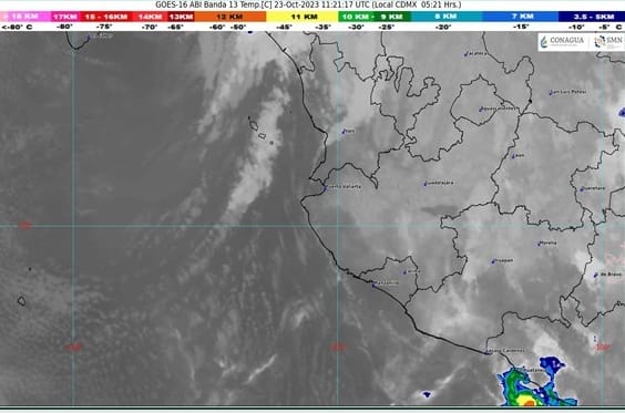 Hoy lunes 23 de octubre, un canal de baja presión en el sureste de la República Mexicana, en interacción con la entrada de humedad del Golfo de México y Mar Caribe y la gradual aproximación de la tormenta tropical ‘Otis’ a las costas del Pacífico Sur, propiciarán lluvias puntuales muy fuertes en Oaxaca y Chiapas, además de lluvias puntuales fuertes y chubascos en el sur y sureste de México.