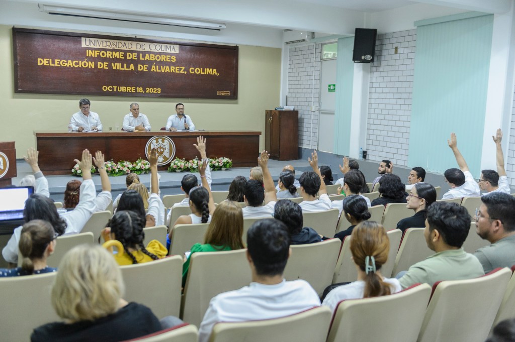 Así, reportó altas cifras en la matrícula, permanencia de estudiantes, aprovechamiento al egresar, resultados en el examen de egreso (EGEL) y estudiantes titulados. En este acto, realizado en el auditorio de Humanidades de la Delegación Villa de Álvarez, estuvieron presentes el comité técnico del plantel y un grupo de estudiantes.