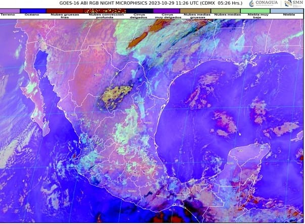 Respecto a las temperaturas, el estado de Colima alcanzaría este domingo máximas de 30 a 35 grados Celsius, al igual que Jalisco, Michoacán, Guerrero, Baja California Sur, Sonora, Sinaloa, Chihuahua, Durango, Coahuila, Nuevo León, San Luis Potosí, Nayarit, Oaxaca, Chiapas, Tamaulipas, Veracruz, Tabasco y Quintana Roo.