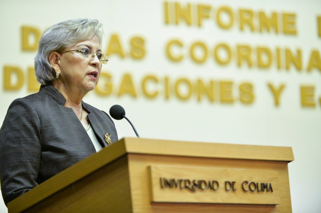 Este lunes, en el Paraninfo Universitario, dio inició la rendición de informes de las coordinaciones, delegaciones y dependencias de los llamados ejes transversales de la Universidad de Colima. El primer informe de labores fue el de la Coordinación General de Docencia, rendido por su titular, Martha Alicia Magaña Echeverría.