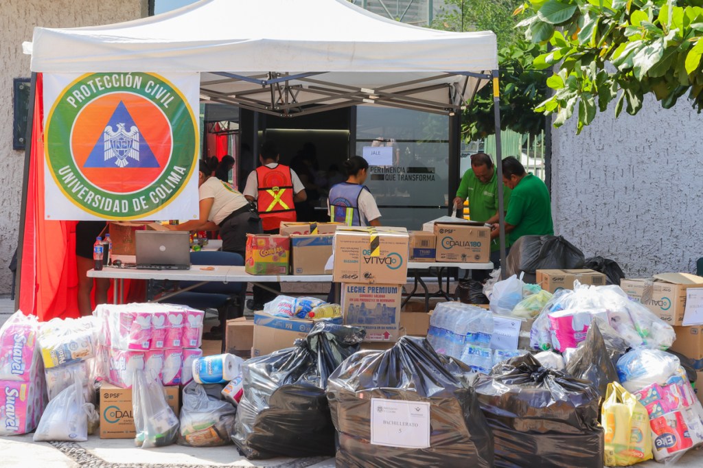 En el centro de acopio hay una gran cantidad de jóvenes trabajando, entre voluntarios, personal de la Brigada Universitaria de Protección Civil y del Centro Universitario para el Bienestar Integral (CUBI), así como integrantes de la Federación de Estudiantes Colimenses y del Voluntariado Universitario. Esta última instancia es la que convocó y coordina los trabajos de acopio de víveres.