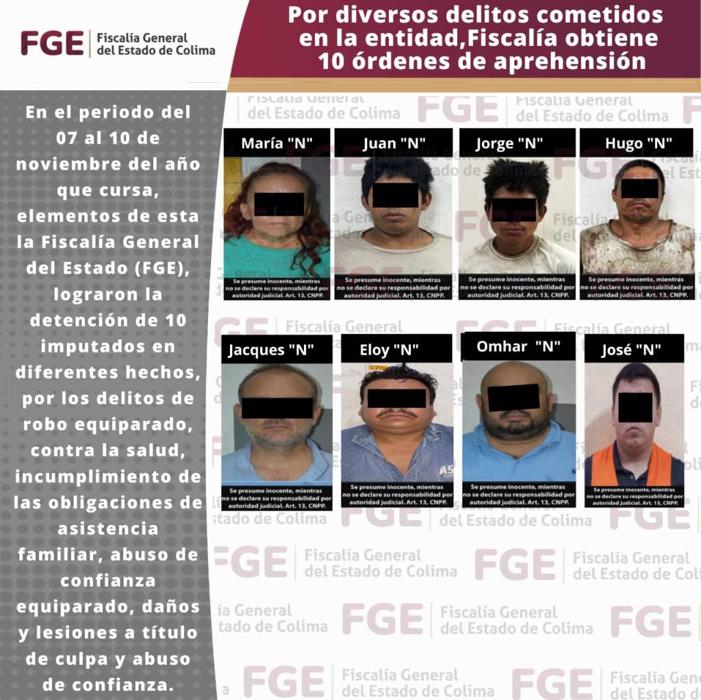 Fiscalía General del Estado (FGE), lograron la detención de 10 imputados en diferentes