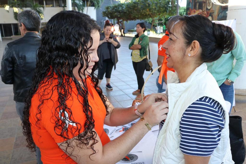 En el marco del Día Internacional de la Eliminación de la Violencia contra las Mujeres, se llevó a cabo en la explana de la Secretaria de Educación y Cultura del Gobierno del Estado de Colima, la colocación del distintivo ‘Listón Naranja’ a las trabajadoras y los trabajadores de la dependencia por parte de autoridades educativas, encabezadas por el titular de esta dependencia educativa, Adolfo Núñez González.