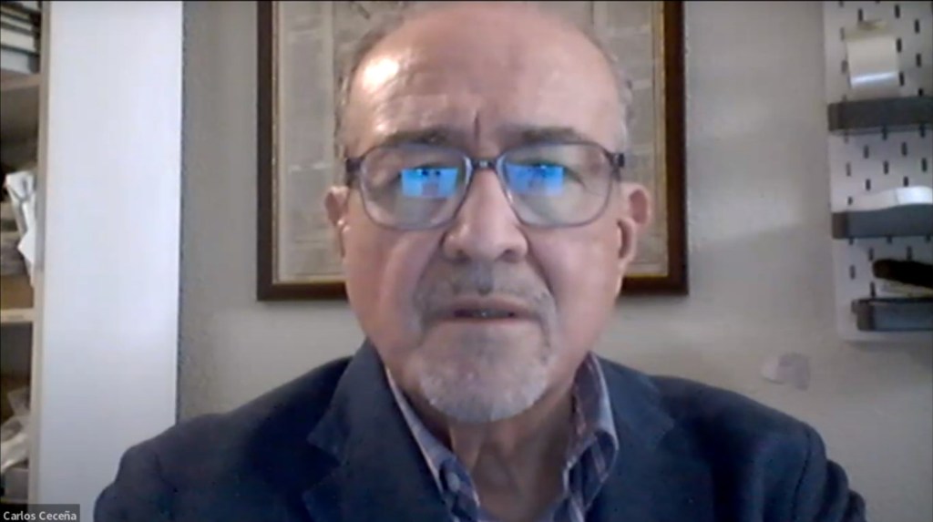 *Carlos Ceceña les habló a las y los jóvenes de los bachilleratos participantes en el programa Adopta una prepa, sobre “El mundo: un reto, mil oportunidades”, como parte de las charlas virtuales de la Red Global MX, Capítulo España.