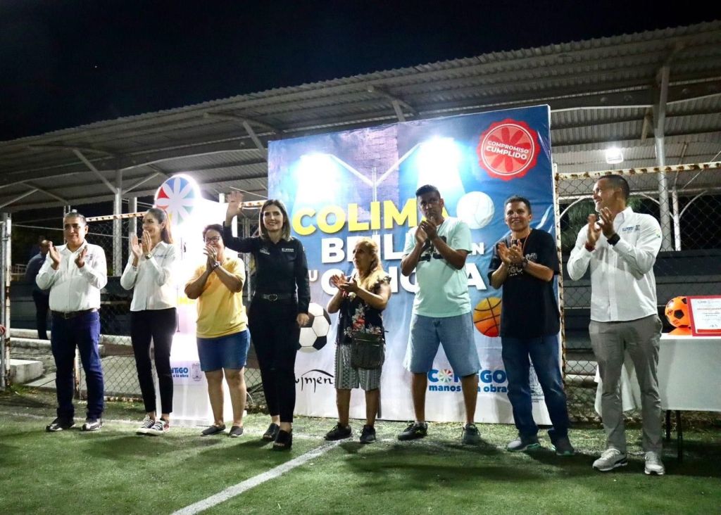 Margarita Moreno informó que personal de la dirección de Servicios Públicos del Ayuntamiento de Colima colocó 8 reflectores en la cancha deportiva de la colonia Las Amarillas, así como 14 postes de luz, entre otras acciones de rehabilitación para mejorar las condiciones de este espacio.