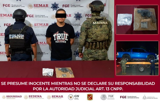 La Secretaría de Seguridad Pública (SSP) del Gobierno del Estado de Colima informa que elementos de la Policía Estatal Preventiva (PEP), en coordinación con personal operativo de la Secretaría de Marina Armada de México (Semar), detuvieron a una persona como imputada de los delitos de violación a la Ley Federal de Armas de Fuego y Explosivos y por robo equiparado, en hechos ocurridos en el municipio de Colima.
