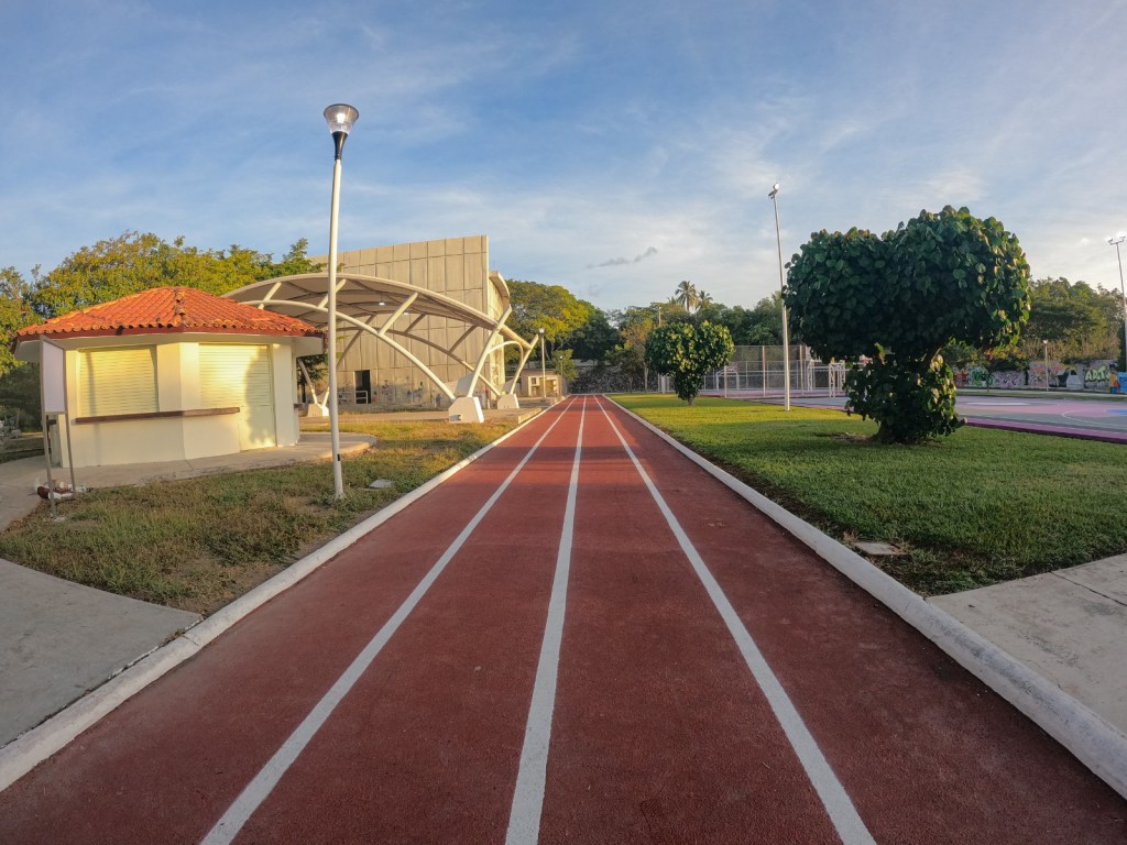 La secretaria de Infraestructura, Desarrollo Urbano y Movilidad (Seidum), Marisol Neri León, explicó que en se colocaron reflectores y luminarias led en la cancha de usos múltiples, y cable múltiple en la trotapista, retiro de reflectores en trotapista, desmontaje de luminarias en cancha de futbol, colocación de reflectores en estacionamiento, pintura en tribunas, pasto fibrilado en cancha de futbol, pintura de alta pigmentación mezclada con arena sílica y caucho para lograr superficie suave y antiderrapante en la trotapista; desmontaje de malla y colocación de 56 metros de malla ciclón en cancha de usos múltiples; colocación de tablero profesional para basquetbol, rotulados de cancha, pintura en portería y machuelos; reparación del tartán, pintura en bancas metálicas y comedores, entre otras acciones más.