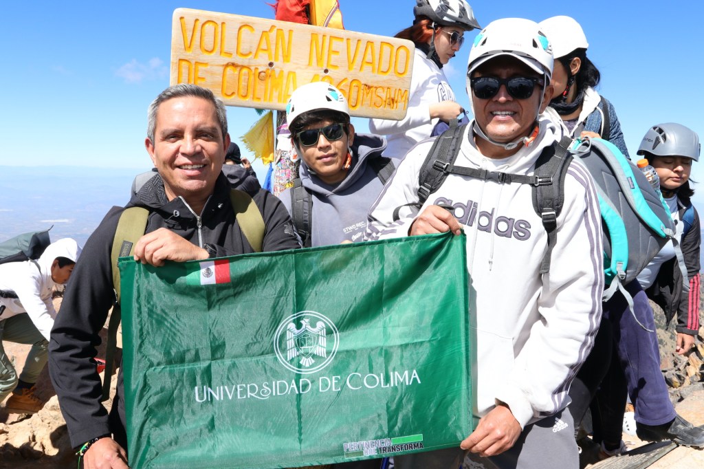 Una vez en la cima, a 4260 metros sobre el nivel del mar, el rector compartió su alegría, ya que subir al Nevado de Colima, dijo, “es todo un reto, un desafío”. Agradeció a la ACU la invitación y felicitó a las y los universitarios que también completaron el ascenso.