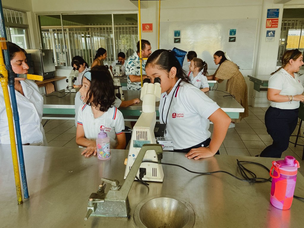 Posteriormente, acompañados por estudiantes de Facimar, recorrieron los laboratorios de la facultad y la Biblioteca de Ciencias del Mar, donde observaron especímenes de animales marinos disecados y utilizaron microscopios. Además, tuvieron la oportunidad de escuchar los sonidos de animales como las ballenas y orcas.