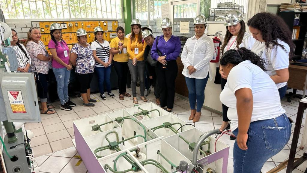 En total participan 25 estudiantes de la Facultad de Ingeniería Electromecánica para atender por grupos de trabajo a las 25 niñas invitadas, cuatro docentes, maestras monitores que acompañan a las niñas, así como madres de familia.