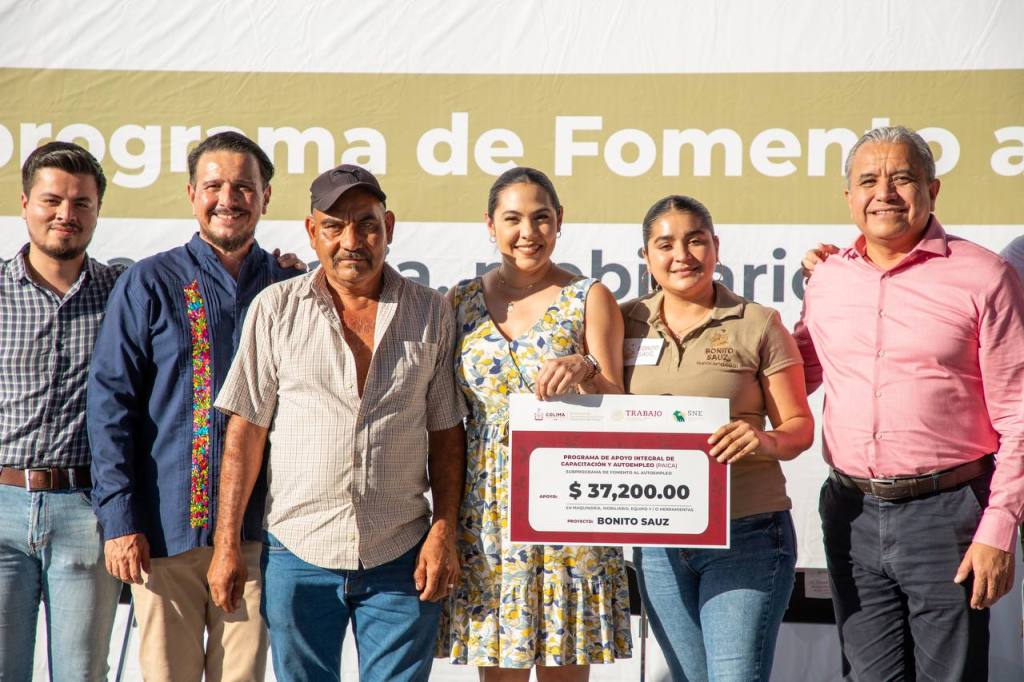 La gobernadora de Colima, Indira Vizcaíno Silva, entregó este lunes equipo, maquinaria y herramienta del Programa Fomento al Autoempleo a 43 proyectos muy diversos e inspiradores de 73 personas acreedoras a este beneficio, con una inversión de cerca de dos millones de pesos, se adquirieron herramientas muy útiles y variadas, como un horno para pizzas, refrigeradores, batidoras, freidoras, equipo para tostado de café, prensas hidráulicas y todo lo necesario para poner en marcha o fortalecer cada emprendimiento.