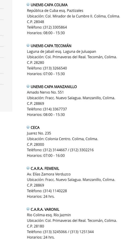 En el siguiente enlace, las personas interesadas podrán encontrar la dirección, horarios de atención y líneas telefónicas para su servicio https://saludcolima.gob.mx/accionesprogramas/ap-adicciones.php