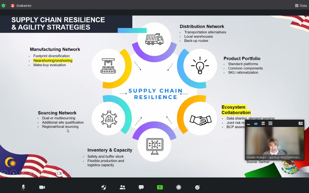 Ante el auge del fenómeno nearshoring, la líder global experta en la cadena de suministro de extremo a extremo, con más de 25 años de experiencia, Gladis Araujo, se pronunció porque los mercados del mundo tengan cadenas de suministros ágiles y resilientes, ya que cada vez son más frecuentes los escenarios con disrupciones que en cualquier momento impactan las operaciones de las empresas.