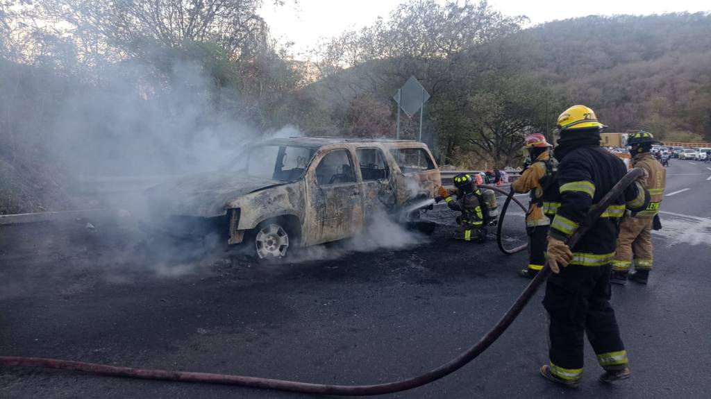 La Unidad Estatal de Protección Civil del Estado de Colima informa que cerca de las 6:30 de la tarde de este domingo 24 de marzo, se registró un incendio de vehículo sobre la autopista Manzanillo-Colima, a la altura del kilómetro 19+800.