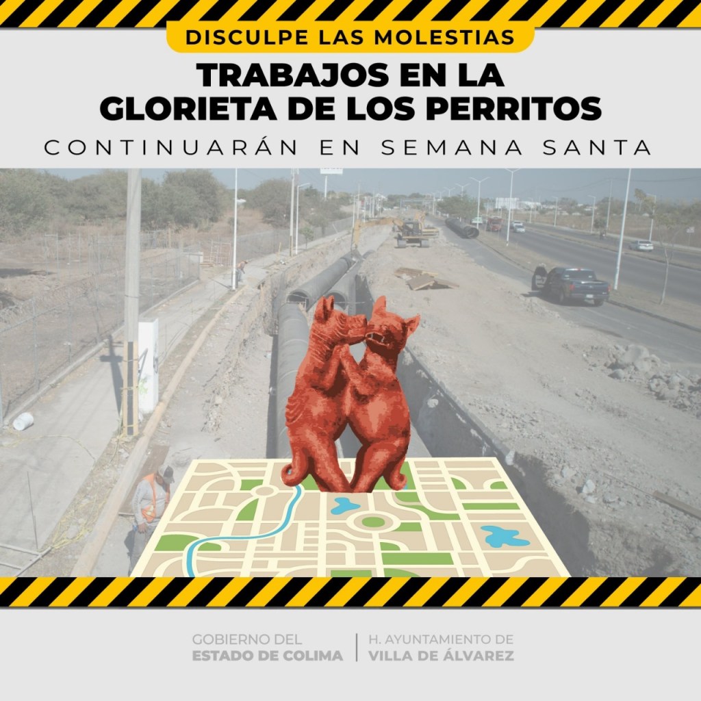 Se informa a la población colimense, visitantes y turistas que, durante la Semana Santa continúan los trabajos en la ‘Glorieta de Los Perritos’, lo que implica la reducción de carriles y el redireccionamiento vial, por lo que se exhorta a las y los conductores a manejar con precaución para evitar accidentes.