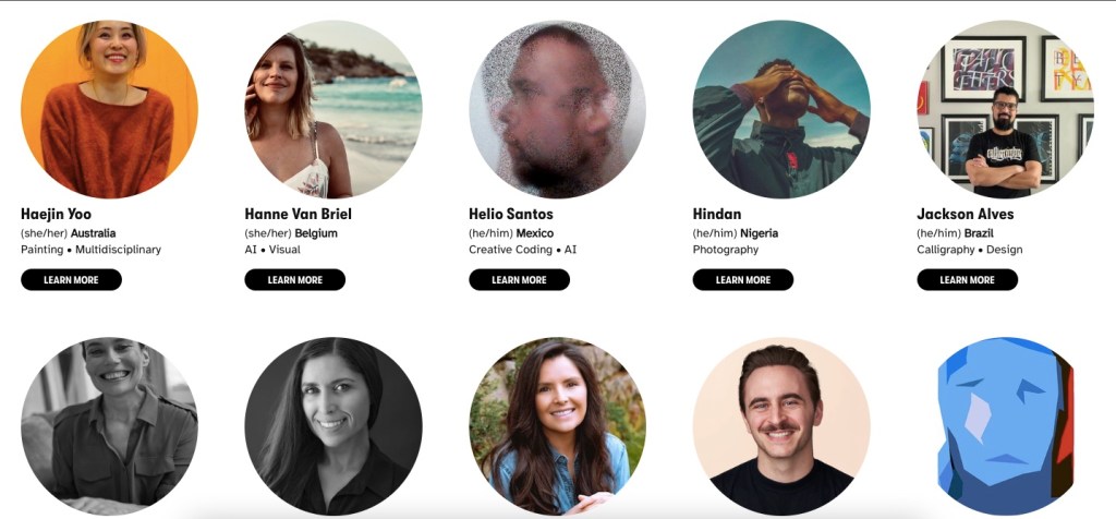 De acuerdo con el portal internet de HUG, los artistas son seleccionados bajo la premisa de ser “artistas excepcionales que están dando forma al futuro del arte y la creatividad”. Se refiere, de manera especial, a las y los artistas que están trabajando en arte contemporáneo y también en el uso de la tecnología.