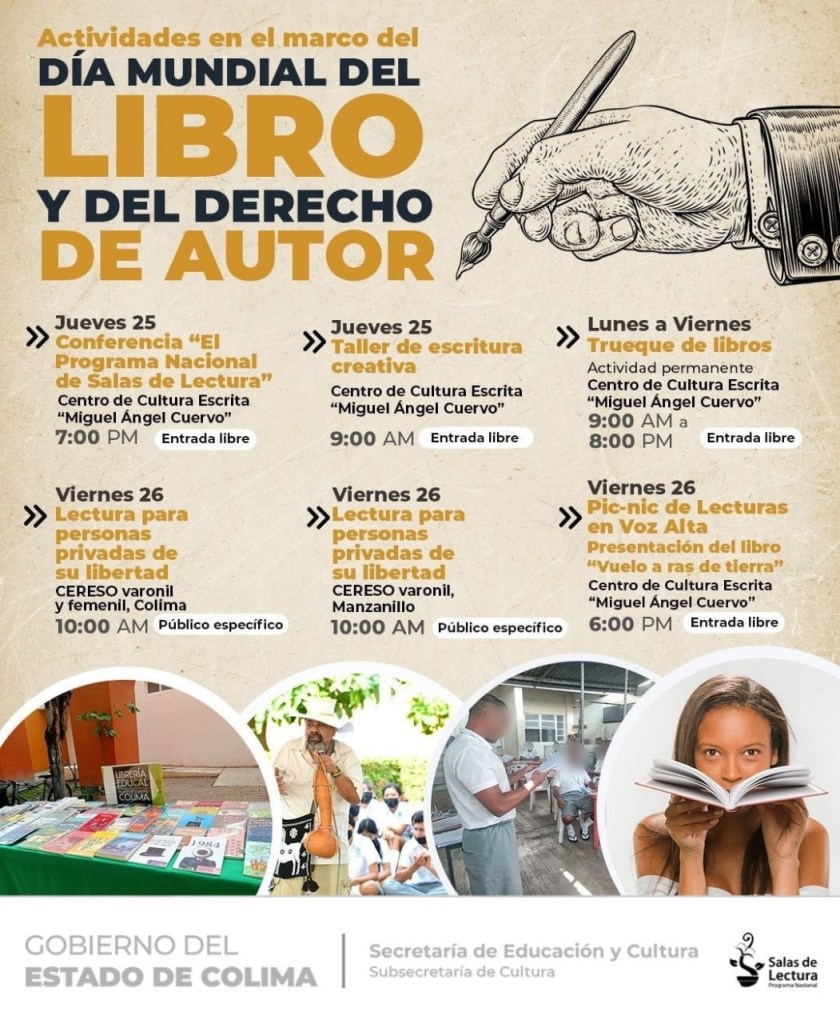 Este viernes concluye la serie de actividades que se han estado realizando en el estado de Colima, como parte de los festejos para conmemorar el Día Mundial del Libro y del Derecho de Autor, que se celebró el martes 23 de abril.