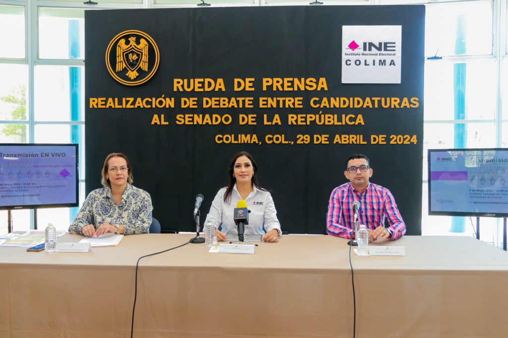 Con el objetivo de que la ciudadanía cuente con la información necesaria y pueda emitir su voto libre, informado y razonado, este lunes en rueda de prensa, fue anunciado este lunes el debate entre candidaturas al Senado de la República que organizará y realizará el Instituto Nacional Electoral (INE) y del cual la Universidad de Colima (UdeC) será sede y la encargada de su producción y transmisión, el próximo jueves 9 de mayo a las 6 de la tarde.