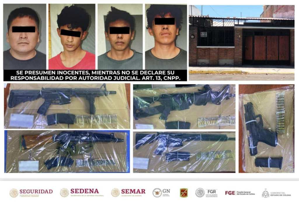 Las personas detenidas están identificadas como integrantes de una célula delictiva y son consideradas probables generadoras de violencia en el estado. La detención se dio en un inmueble del municipio de Villa de Álvarez, en el cual también fueron aseguradas armas largas y cortas, cartuchos de diversos calibres, así como droga y aparatos de telefonía celular.