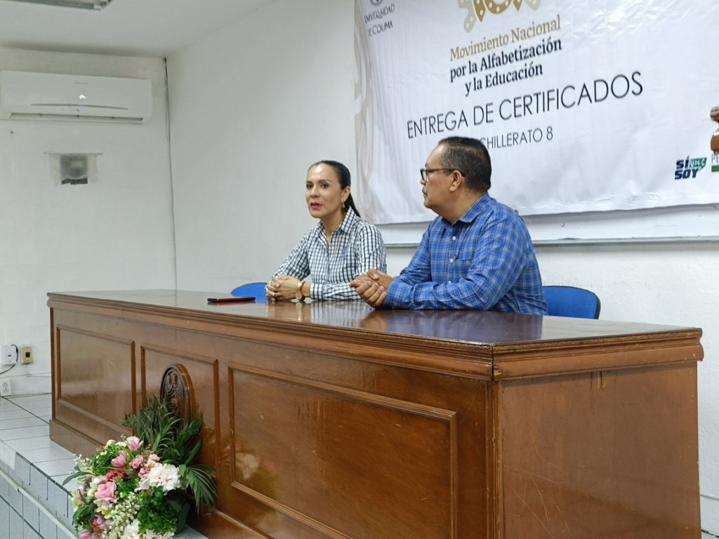 En días pasados el Bachillerato 8 de la Universidad de Colima (UdeC), ubicado en Manzanillo, fue sede de la entrega de un certificado de primaria y otro de secundaria como parte del Movimiento Nacional para la Alfabetización y Educación, al que apoya esta casa de estudios mediante un convenio firmado con el Instituto Estatal de Educación para Adultos (IEEA-Colima).