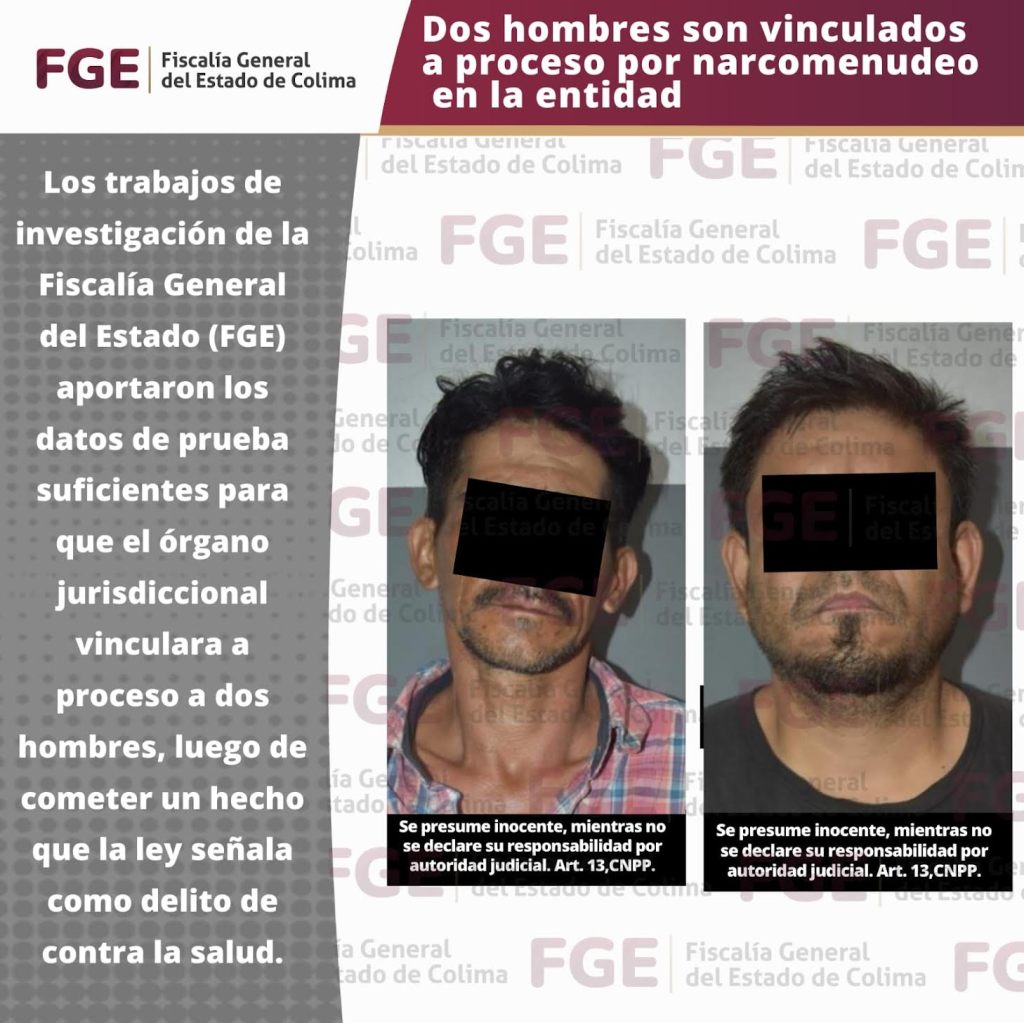 Los trabajos de investigación de la Fiscalía General del Estado (FGE) aportaron los datos de prueba suficientes para que el órgano jurisdiccional vinculara a proceso a dos hombres, luego de cometer un hecho que la ley señala como delito de contra la salud.