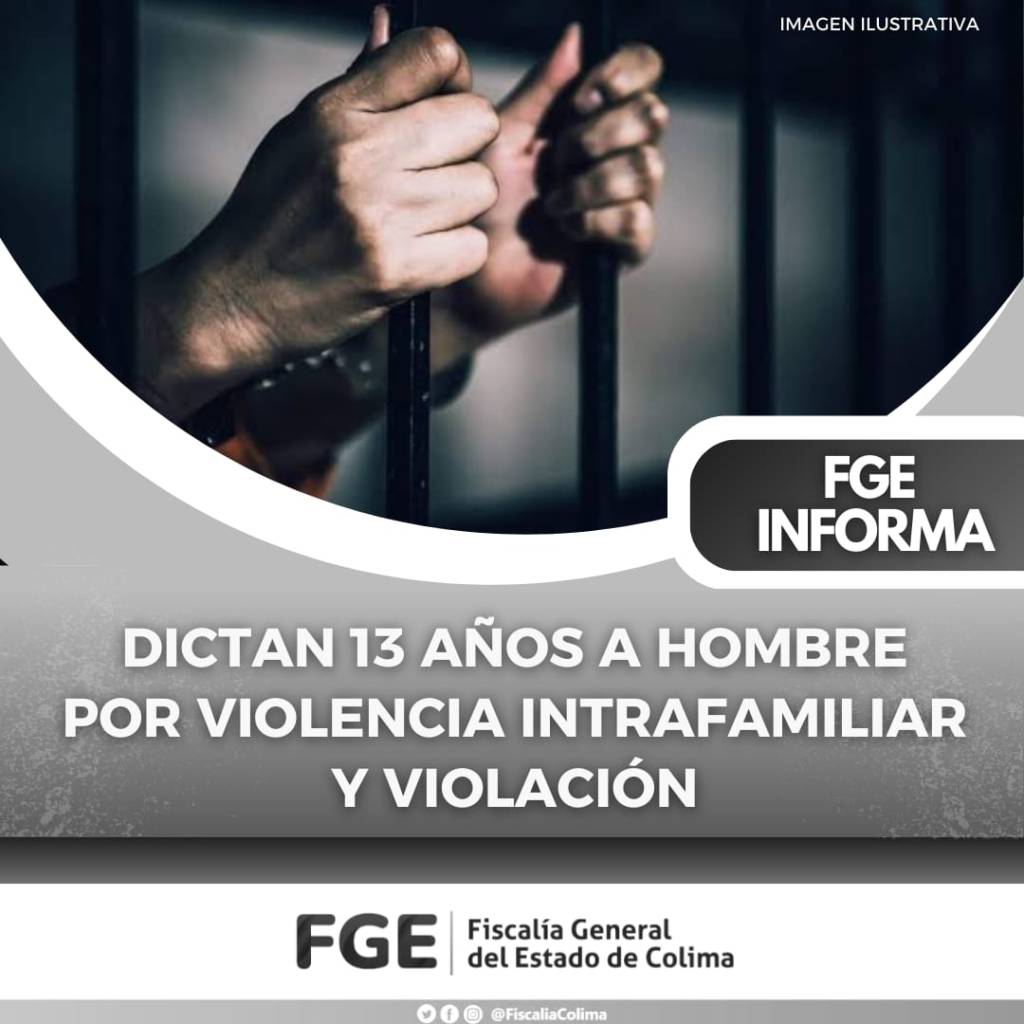 La Fiscalía General del Estado (FGE) informa que Gregorio Israel “N” recibió la sentencia condenatoria de 13 años de prisión luego de que fue probada su responsabilidad penal en los delitos de violencia intrafamiliar y violación en agravio de su ex pareja sentimental.