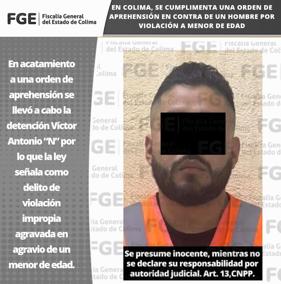 En acatamiento a una orden de aprehensión se llevó a cabo la detención Víctor Antonio “N” por lo que la ley señala como delito de violación impropia agravada en agravio de un menor de edad.