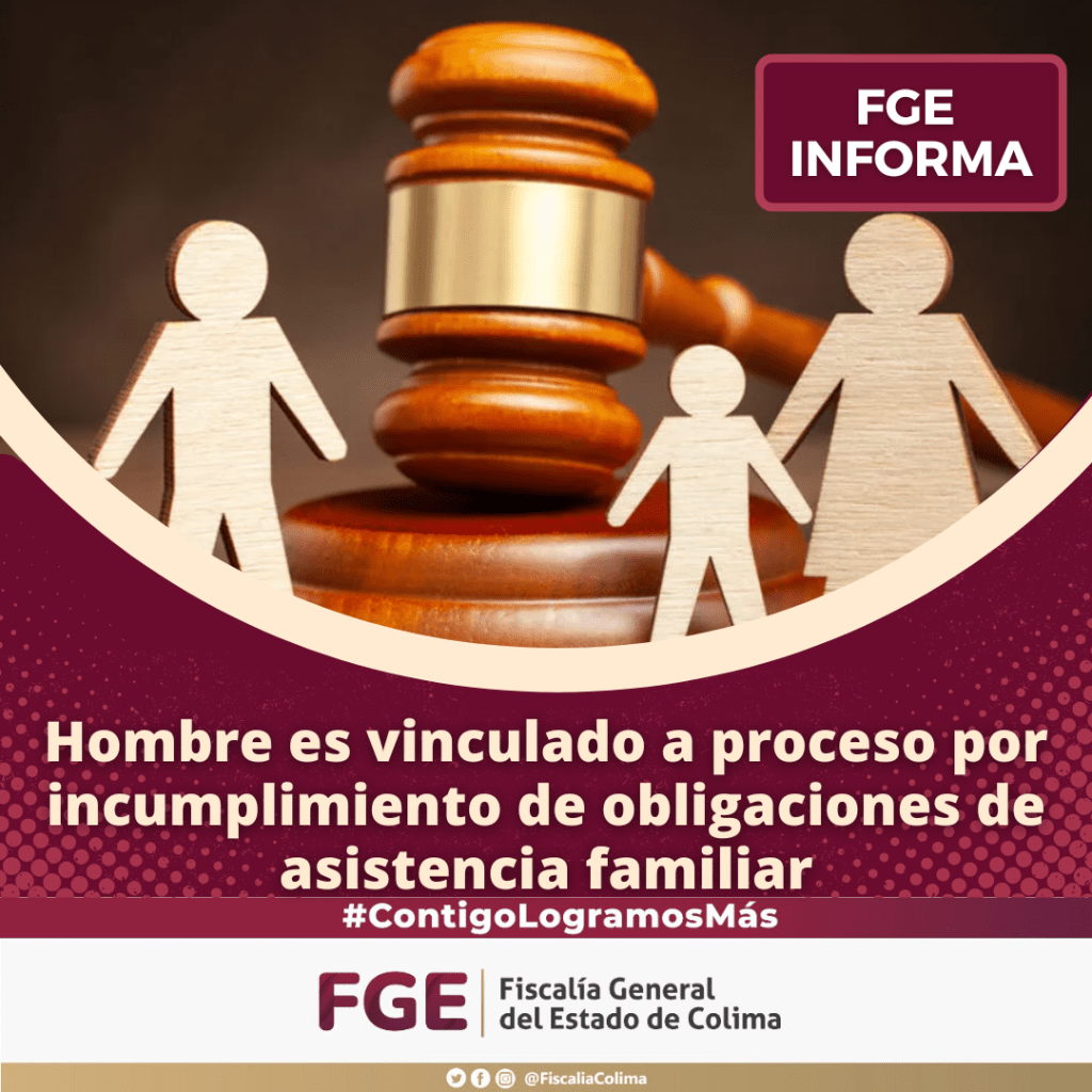 La Fiscalía General del Estado (FGE) informa que, derivado de una investigación por incumplimiento de obligaciones familiares, un hombre fue vinculado a proceso por presuntamente no cumplir con la asistencia económica a su dependiente desde el 15 de febrero de 2024 hasta el 25 de abril de 2025.