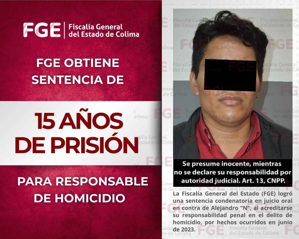 La Fiscalía General del Estado (FGE) logró una sentencia condenatoria en juicio oral en contra de Alejandro “N”, al acreditarse su responsabilidad penal en el delito de homicidio, por hechos ocurridos e n junio de 2023.