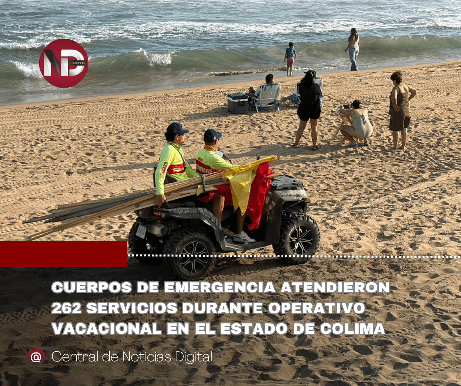La Unidad Estatal de Protección Civil del Gobierno del Estado de Colima que encabeza la mandataria Indira Vizcaíno Silva informa que, durante el Operativo Vacacional Semana Santa y Pascua 2026, del 28 de marzo al 12 de abril, los cuerpos de emergencia atendieron 262 servicios en la entidad, entre ellos 34 rescates acuáticos, principalmente en playas de Manzanillo. El titular de la UEPC, Erick Alberto González Sánchez, agradeció el trabajo conjunto y la coordinación entre las dependencias de los tres niveles de gobierno y grupos voluntarios.