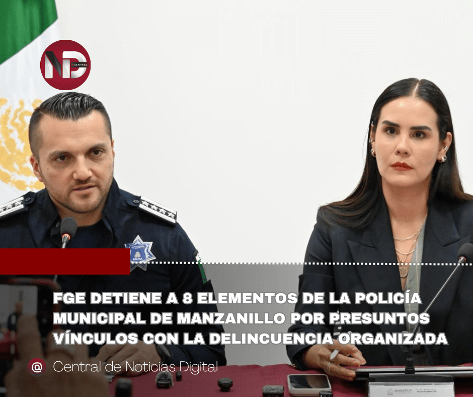La Mesa de Coordinación Estatal para la Construcción de la Paz y la Seguridad en Colima informa que la Fiscalía General del Estado (FGE) detuvo a ocho elementos en activo de la Policía Municipal de Manzanillo, acusados de vínculos con la delincuencia organizada, de acuerdo con la orden de aprehensión que un juez libró en su contra, por los delitos de uso indebido de información y asociación delictuosa.
